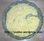 • Taruh di mangkok, tambahkan garam, gula, merica, daun bawang, daun seledri, telur. Aduk sampai tercampur rata. Kemudian baru tambahkan tepung. Aduk rata kembali.