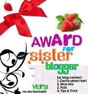 Sangat senang dan pastinya bahagialah dikasih peluk hangat dan hadiah award dari seorang sahabat blog yang cetar dan terkenal seantero per-blog-an tanah air 😀 .