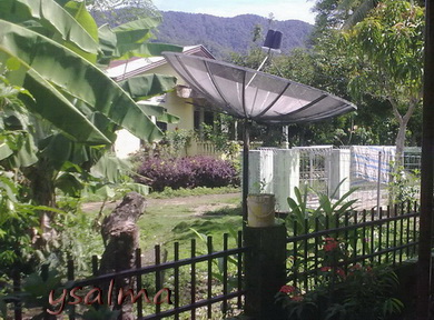 Bekas pokok yang dipotong itu adalah pohon rambutan yang rindang. Rumah yang nampak di depan itu dulunya adalah kebun mangga, kebun duku. Desa kami memang dikelilingi perbukitan.