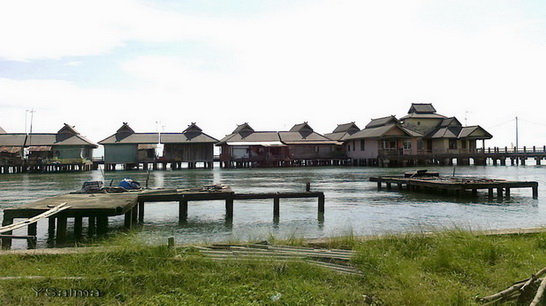 Rumah panggung di laut yang ini kok beda dengan yang biasanya. Lebih rapi dan indah…