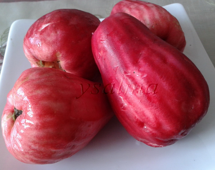 3. Wih, kalau dinikmati pas cuaca lagi panas kayaknya mantep banget nih. Sluurrppp…. Jambu ini kayak jambu air gitu, ya… Cuma setauku jambu air ukurannya relatif lebih kecil….
