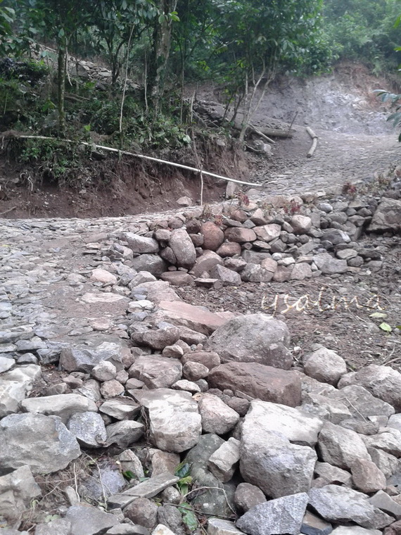 Jalan berbatu yang masih dikerjakan oleh petugas, makin lama semakin terasa menanjak, juga masih terlihat panjang di depan.