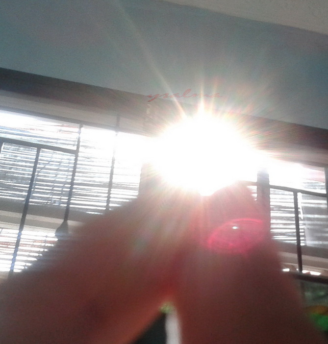 Ternyata tetap aja silau matahari pagi itu menggoda mata. Iseng tak ambil fotonya. Idenya sih biar berkesan ada cahaya di ujung jari gitu. Ternyata, hasil fotonya juga gagal total.