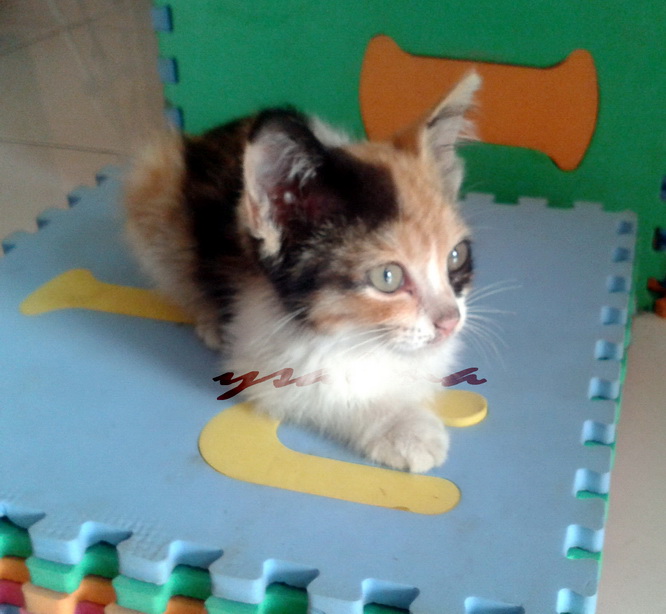 Hari Minggu siang tanggal 14 Desember, teman hidup membawa kucing diatas ke rumah. Kucing yang sepertinya ditinggalkan terpisah dari induknya itu sedang mengeong-ngeong di depan rumah salah satu tetangga, sepertinya kelaparan dan kotor.